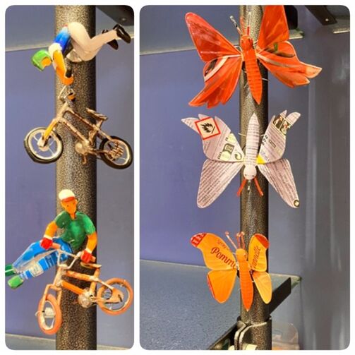 Hiernaast hebben ze ook speciaal beeldjes ingekocht die op vaders gericht zijn, er zijn een visser of fietser of zelfs een golfer. Afkomstig uit Zimbabwe en zijn gemaakt van serpentijn en afvalmetaal.