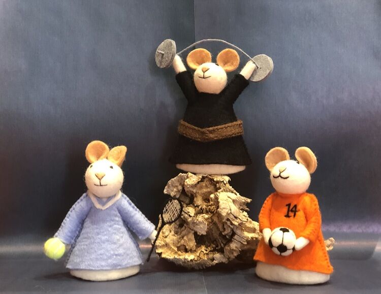 De Wereldwinkel noemt hierbij de tuinstekers (van oude auto’s en oliedrums uit Zimbabwe) en gieters (van gerecycled plastic uit Ghana). Van alle producten in de Wereldwinkel hebben de sportmuizen van vilt toch wel een hoog schattigheidsgehalte, daarom staan zij deze week in de schijnwerper. De gewichtheffer, de tennisser en de voetballer staan er parmantig bij en van de yogi wordt u gelijk al rustig.