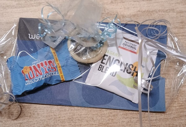 Irene Oskam (Brielle) heeft de mooie boodschappentas met fraaie wereldwinkel producten gewonnen. Irene Oskam was bijzonder verrast maar er wel heel blij mee.